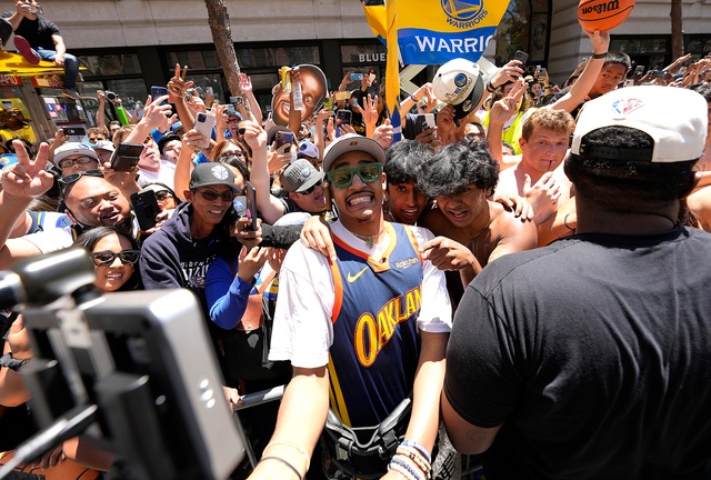 Jordan Poole took a selfie with fans.