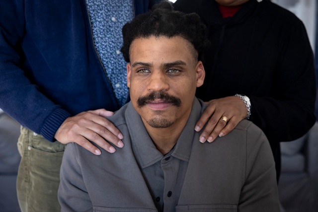 William and Angela Johnson rested their hands on their son Andrew Johnson.