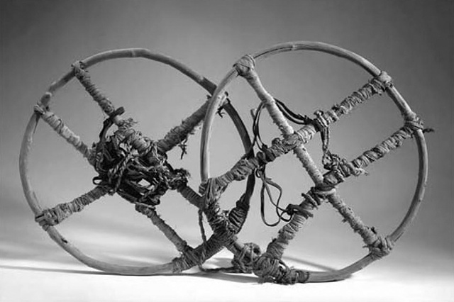 The Washoe used snowshoes fashioned from bent hardwood and animal sinew, similar to these.